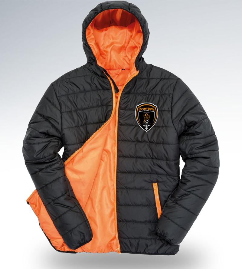 Prešívaná bunda s integrovanou kapucňou a kontrastným lemovaním. Disponuje dvoma bočnými vreckami na zips, kontrastnými zipsmi a podšívkou v kontrastnej farbe. Reflexné detaily (bez ochrannej funkcie) na bokoch zvyšujú viditeľnosť a bezpečnosť. Bunda má neutrálny veľkostný štítok a prístup k zušľachteniu.